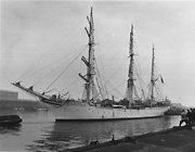 Donated by Hartlepool Museum ServiceThree masted sailing ship Statsraad Lehmkuhl previously Grossherzog Friedrich August built in 1914 as a training ship for the German Merchant Marine. Here she is in the River Tees having been escorted by the Hartlepool tug Stranton.