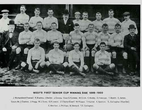 The Final on 21st April, 1900. saw West beat Tudhoe by 6 -3 to win the Senior Cup for the first time ever. The team returned from Westoe where the final had been held to find the crowds filling the town. The team headed for the Royal Exchange Hotel(the Club Headquarters where Committeeman Coun W J Coates was mine host) , and such was the crush of people in Church street, that one onlooker was killed in the melee.