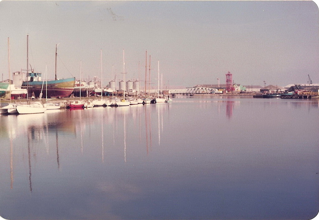 Taken in the 1980s prior to the Marina development, the image is looking across Union Dock looking towards the swing bridge which was in Middleton Road.