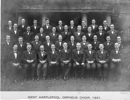 West Hartlepool Orpheus Choir 1931. Posing dressed in their 'singing uniforms'