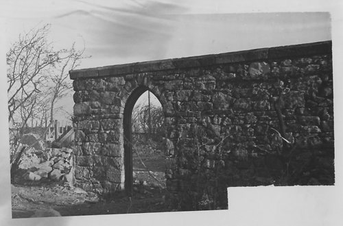 The garden wall from Dyke House Farm. Premises in process of being demolished.