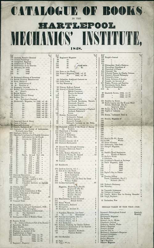 Hartlepool Mechanics Institute, Catalogue of books 1848