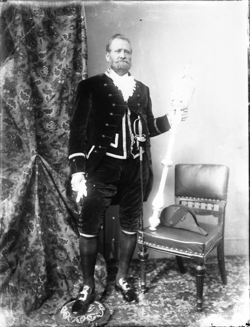 A portrait of a Hartlepool Mace Bearer. Written on on the back is T.C. Spence. I think this is the name but the writing in sprawled.