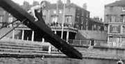 Donated by Mrs. Maureen LedingtonJeannie Lappin stuck halfway down the shute at Hartlepool Headland Outdoor Swimming Pool in 1931.