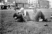 Donated by Mr. John RobinsonAfter a busy day at the beach, John Robinson and his cousins enjoy fish and chips on the rough grass between the beach and St. Hilda's Church - now landscaped gardens. 1948.