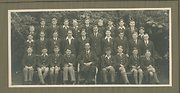 Donated by Hartlepool Museum ServiceThe principal Kingsley Gallimore is at the centre of the front row. Interestingly, all the male teachers are wearing gowns and the female staff are not. It is unlikely that none of them were entitled to wear one.