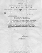 Donated by Alan GrangeLetter received by Allan Grange from Richardsons Westgarth informing him he had been successful with his applictaion for the post of Assistant Statfile Operator in our Power Plant Drawing Office.