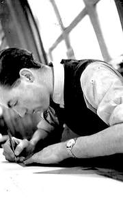 Donated by Stuart James WilsonJim is shown looking over the top of a marine steam-turbine gearcase.