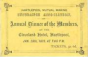 Donated by Hartlepool Library ServiceHartlepool Mutual Marine Insurance Association, Ticket for Annual Dinner at the Cleveland Hotel in 1875.