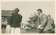 Donated by Hartlepool Museum ServiceGray's cricket team coming onto the pitch from the Oval Pavillion at Grayfields Sports Ground. Sir William Gray in front using a tie as a belt.
