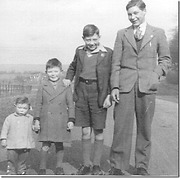Donated by Mr. Eric MuddThe four Mudd lads behind the Park on the way to Elwick in 1945. From left to right: Eric, John, George and Brian.