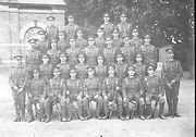 Donated by Hartlepool Library ServiceA unit of soldiers photographed outside the Durham Royal Garrison Artillery premises. The tower of the Cetral Co-op building can be seen on the right.