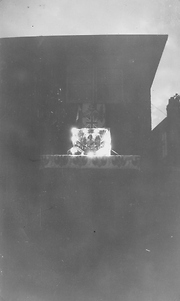 Donated by Mr. Brian WardThe coronation decorations at No.10 Shakepspeare Avenue illuminated at night.