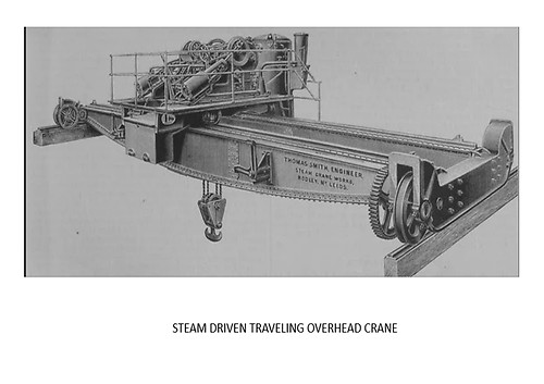 Picture of a steam driven overhead crane- this gives an idea of what the crane looked like.