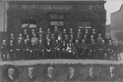 Donated by Hartlepool Museum ServiceLarge group of Cllr, Aldermen & the Mayor standing outside an unidentified building.