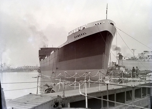 The ROMERAL (6,750grt), being launched from Gray’s Central Yard into the Central Dock, in 1953.