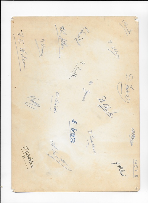 Donated by Bill DavisonThis Signatures of some of the players who played for Henry Smiths under 13s team in 1956/57 can be seen on this photograph.