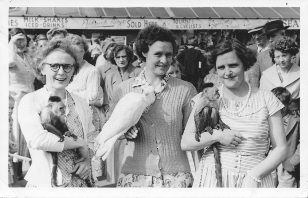Left to right Floss Delafield, Beryl Gibson and Essie Flounders at Seaton around 1958. The girl behind them to the right s possibly Beryl's daughter Elaine.