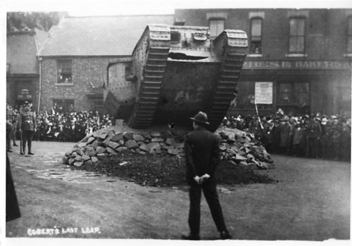 West Hartlepool had won the competition, and in June 1919, in front of the Municipal Buildings, General E. D. Swinton, presented “Egbert” to the town. Naturally “Egbert” put on a show – his last leap before going on permanent static display at Stranton Bull Garth, finally going for scrap in 1937.