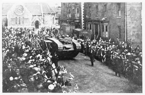On November 26th, 1917, “Egbert”, one of the tanks that had recently taken part in the Battle of Cambrai, the first large-scale use of the tank in battle, was shipped back from France and put on display in Trafalgar Square. So successful was this fund-raising event, that a further five tanks were allocated to tour the country’s major towns and cities to raise money from the sale of Bonds and Certificates. To foster a spirit of competitiveness, it was decided that whichever town or city raised the highest total per head, it would win one of the tanks - “Egbert”.