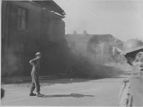 At 4.35am on 30 August 1940 a bomber flew past & released two HEs which hit Pilgrim & Hilda Streets. There were eleven people in a fish shop cellar of whom nine died including six children. ARPs survey the damage.