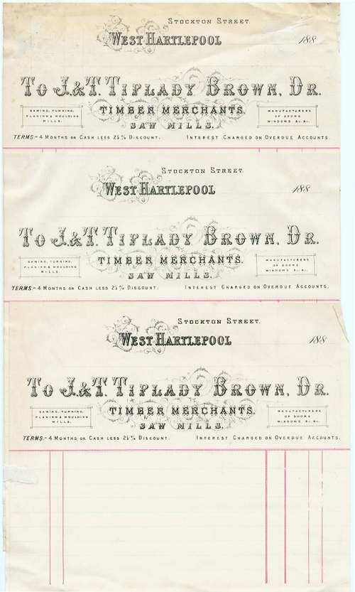 J. & T. Tiplady Brown, Timber Merchants, Headed paper.