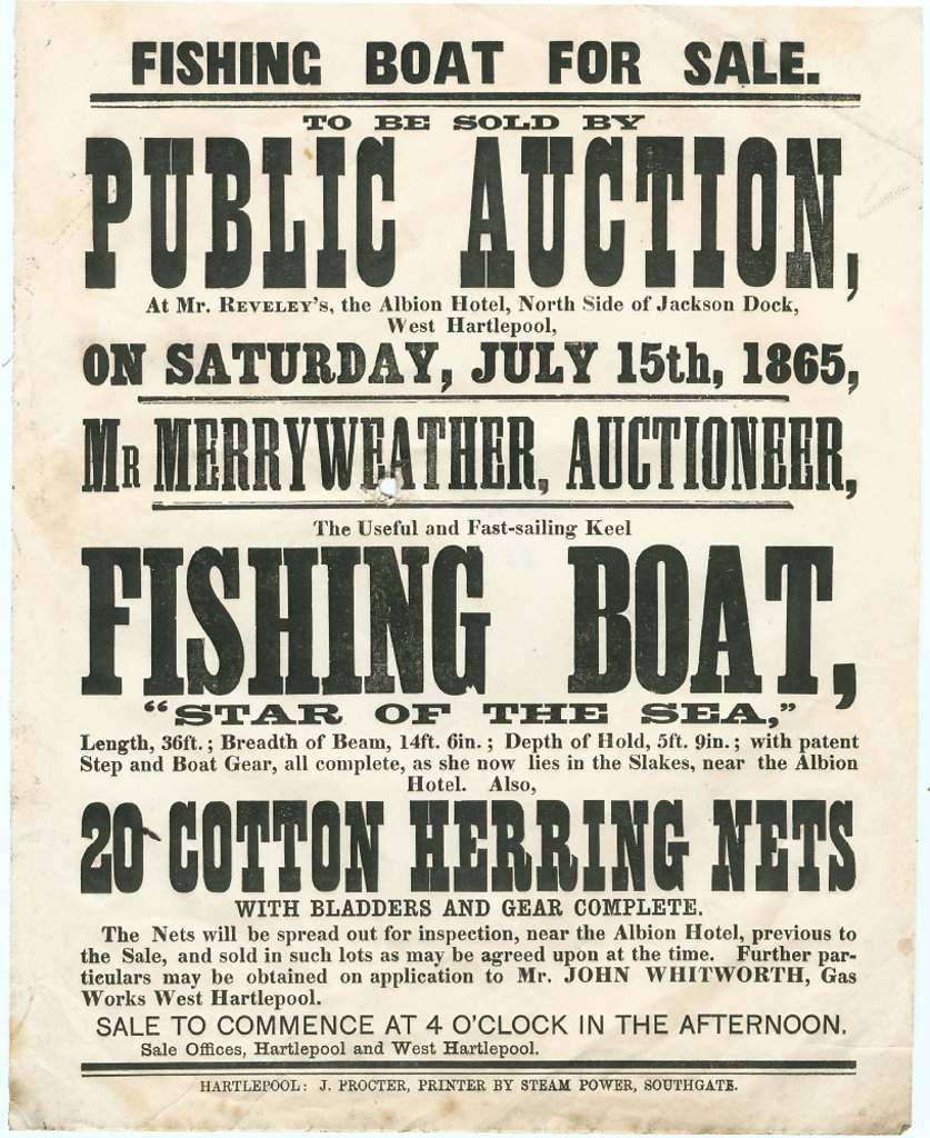 Yacht for sale by auction, 1846, 'Tom Thumb'