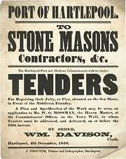 Donated by Hartlepool Library ServiceWest Hartlepool Improvement Act 1854, tenders wanted for drainage works.