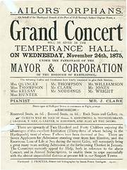 Donated by Hartlepool Library ServiceGrand Concert in the Temperance Hall on 24th Novenber 1875 on behalf of the Hartlepool Branch of the Port of Hull Society's Sailor's Orphan Home.