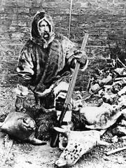 Donated by Bowes Museum, Barnard Castle, County Durham'Seaton at the North Pole' was the caption Pattison added to this photo. A rather distressing image of a seal hunter with his catch. His clothing would be made from seal skins to detract from his scent. Seals died out in the early 20th century on what was known as Seal Sands due to over culling and pollution. They were re-introduced and are now breeding again.