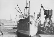 Donated by Hartlepool Library ServiceTmber Pond, East Side, West Hartlepool. Ship being constructed in the background and steam driven cranes.