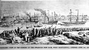 Part of the Hartlepool Library Services collectionBlumer's shipyard c1858. Luke Blumer keeping an eye on his workmen. I wonder why a woman and child are in the picture.