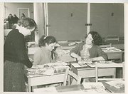 Donated by Brierton SchoolPossibly in 1960s by the fashion, this seems to be some kind of craft class. Girls unknown.
